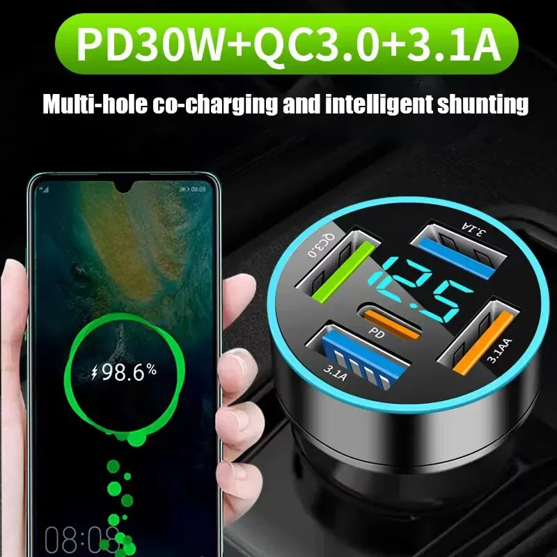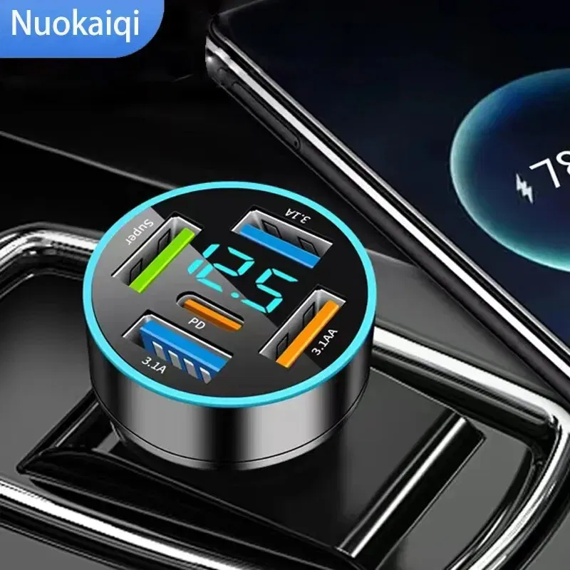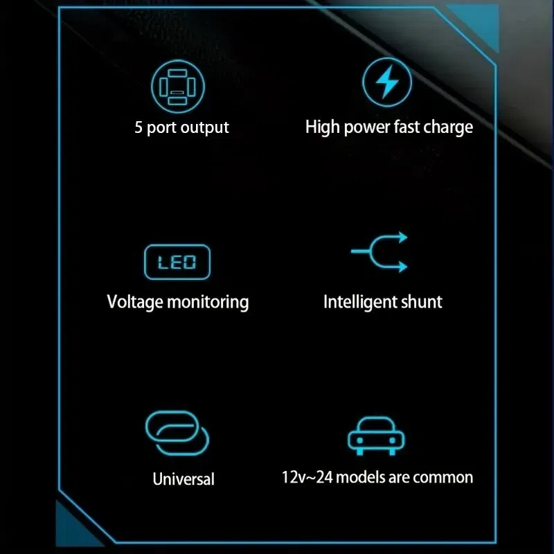 • Multiple Ports :With five ports, this car charger can charge up to four devices simultaneously, making it perfect for road trips and long commutes.