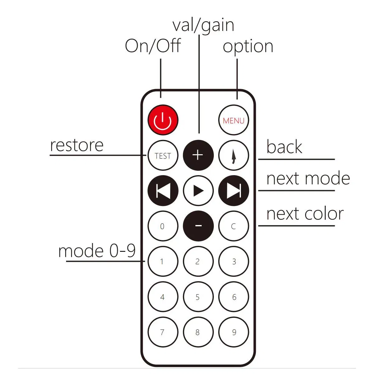 1.Short press the knob to enter the display menu options, select mode, color, brightness, speed, and frequency band;