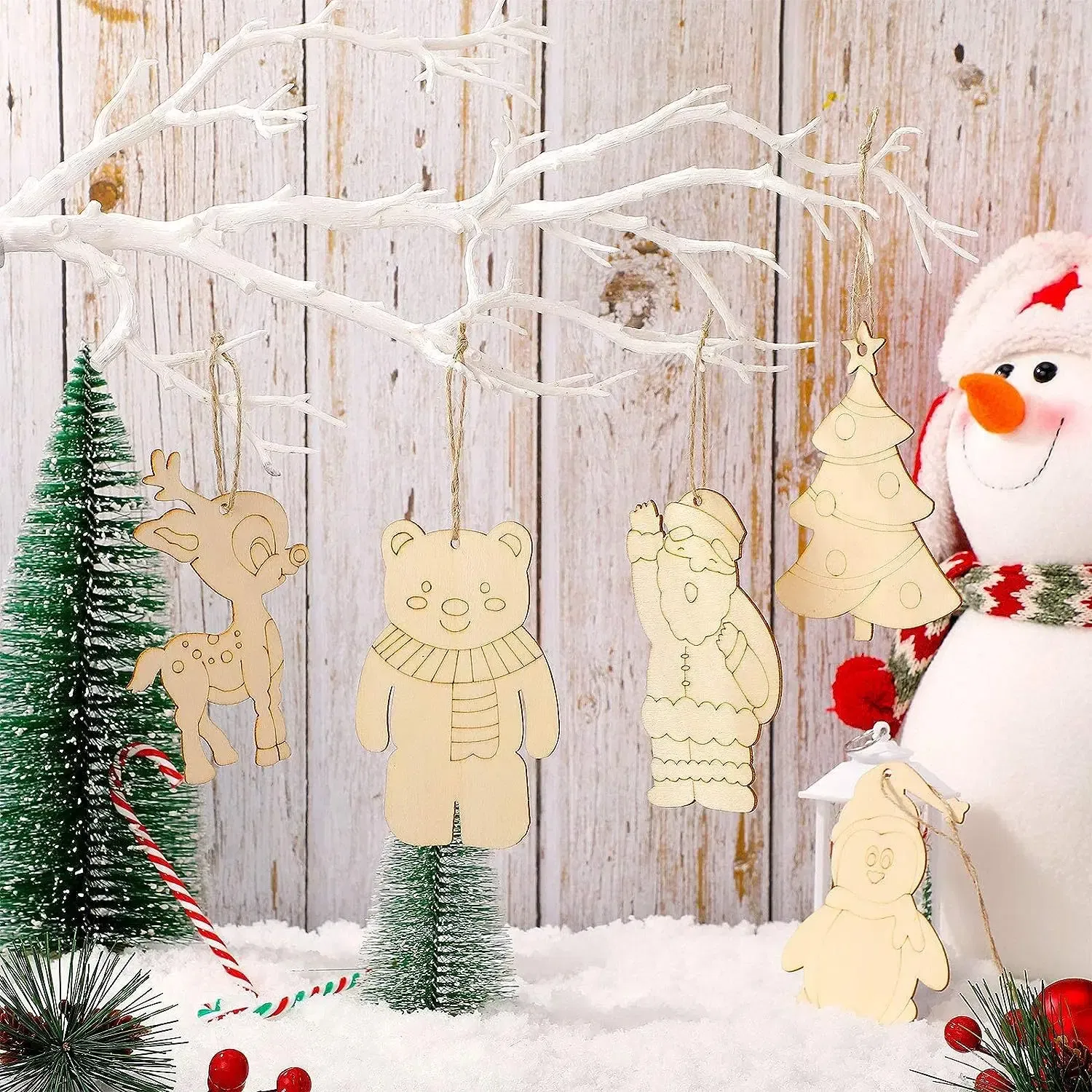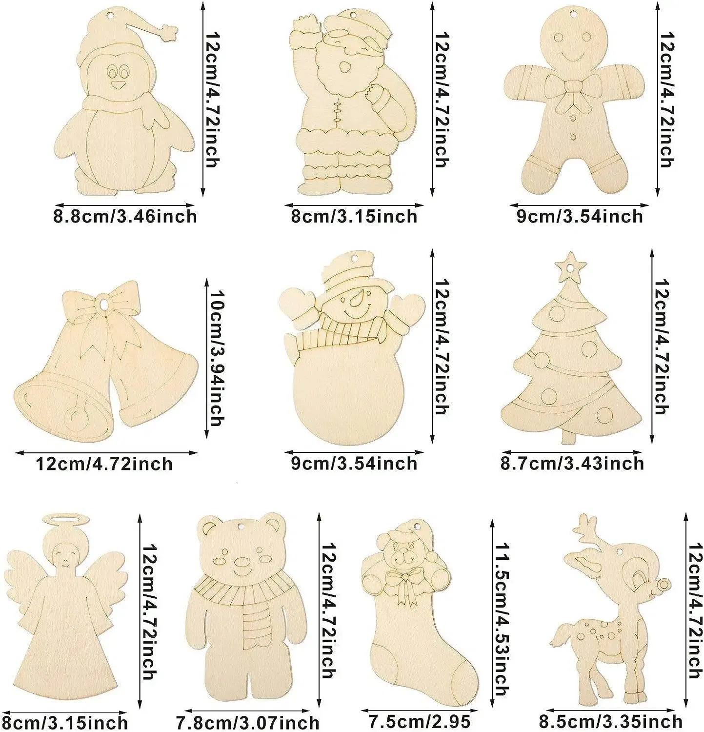 Package content: 30pcs Christmas Wooden Ornaments (10pcs for ench style)