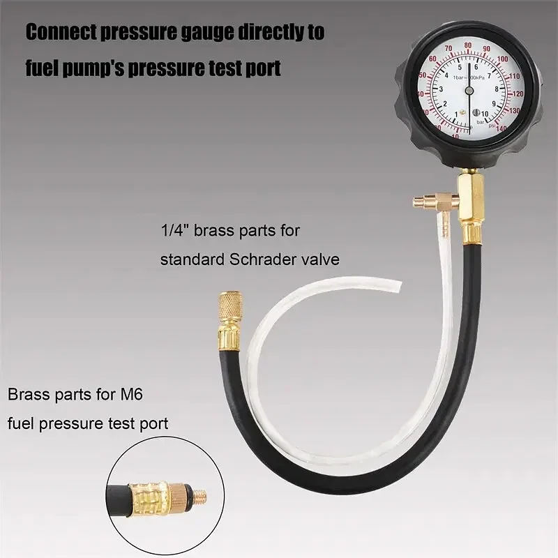 • High Pressure Gauge :This fuel pressure tester gauge kit measures up to 140PSI, providing accurate readings for your vehicle’s fuel injection system.
