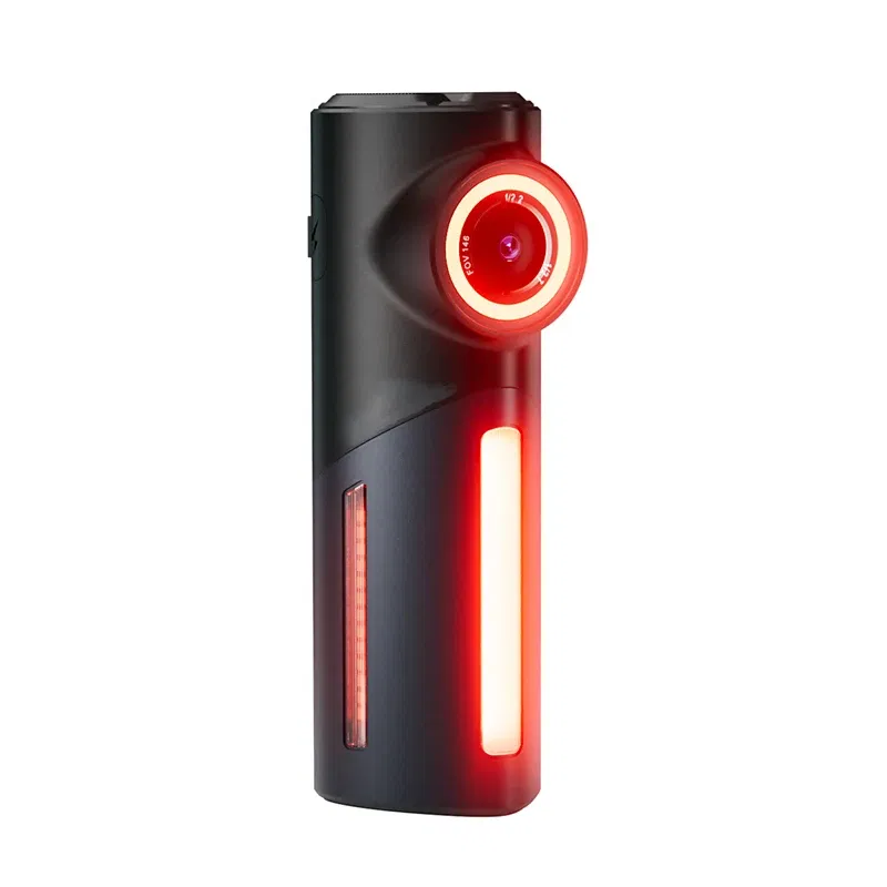 On the top are two easy-to-use operational switches – one for the tail light and one for camera recording. Powered by a 3400mAh battery with a USB-C charging port, you can adjust the camera and taillight settings to maximize battery life. Aluminum housing with plastic parts contributes to a lightweight yet robust body, with an IPX6 waterproof rating to defy adverse weather. When it comes to mounting, you can easily attach this sleek, compact device to most seat posts via the quick-release mounting system, with confidence and without tools.