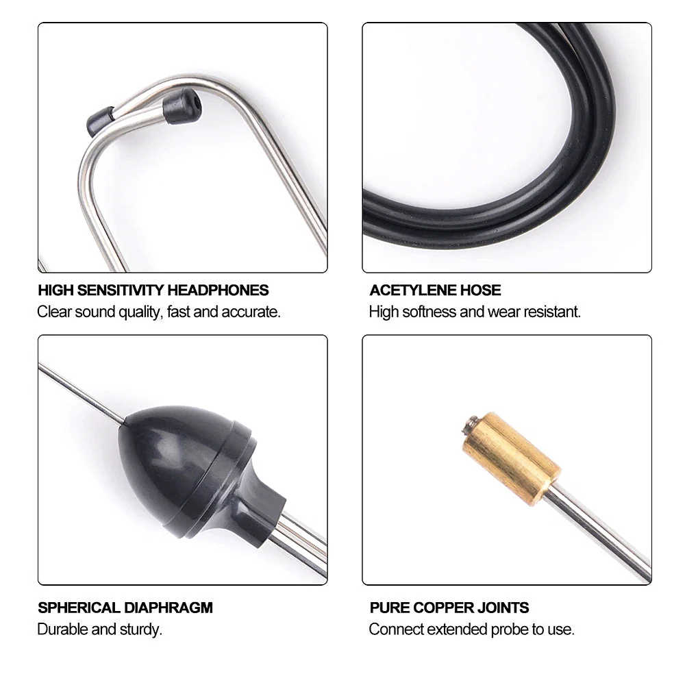 2. Sentive sound source of noise: features a sensitive sound chamber that amplifies sounds so that you can easily detect the damaged parts within engine.