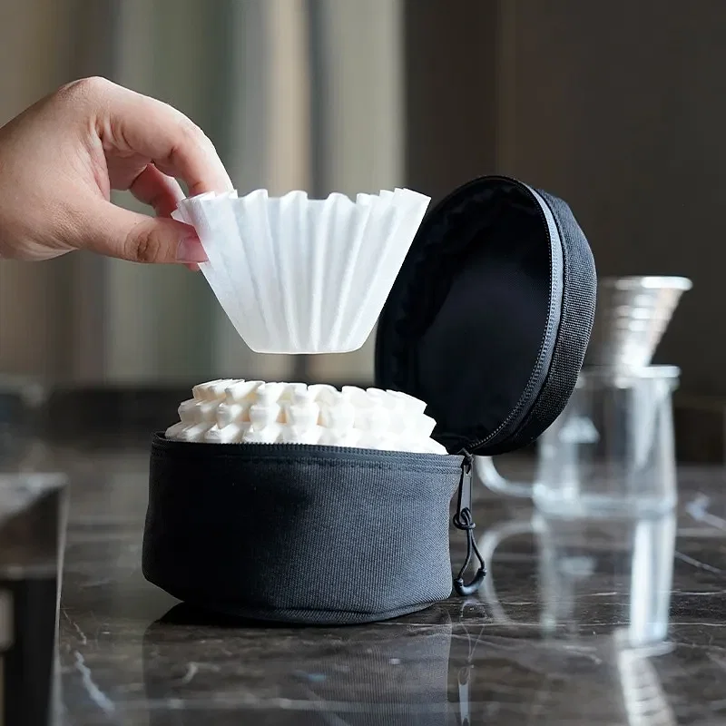 WATERPROOF MATERIAL – The coffee filter holder is made of stain-proof fabric with waterproof coating, which is durable and easy to clean. It can keep your filter paper away from dust during camping or traveling.