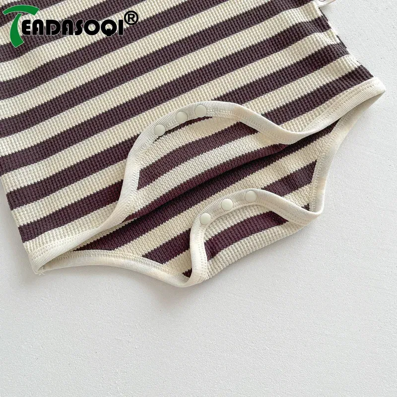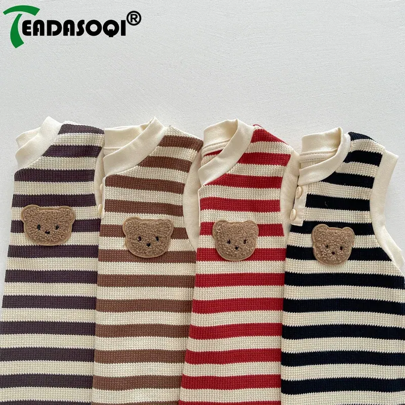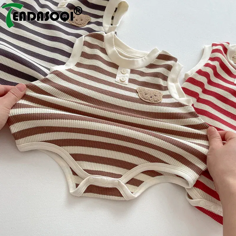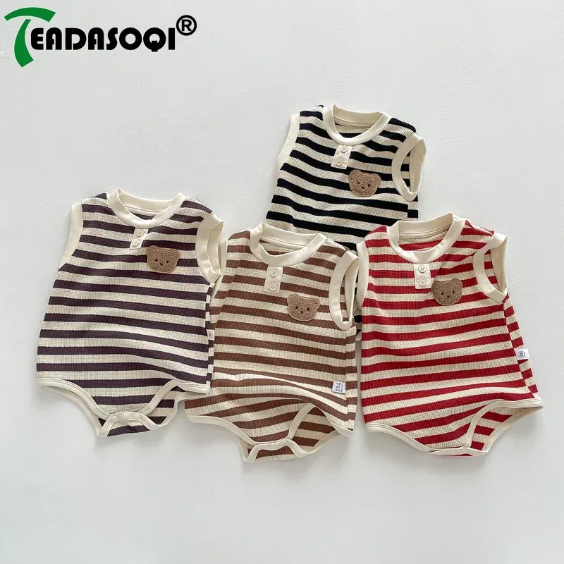 Summer Newborn Sleeveless Knit Bodysuits Striped Jumpsuits Cotton Cartoon Bear Baby Girls Boys Romper Kids Infant Clothing 0-2Y